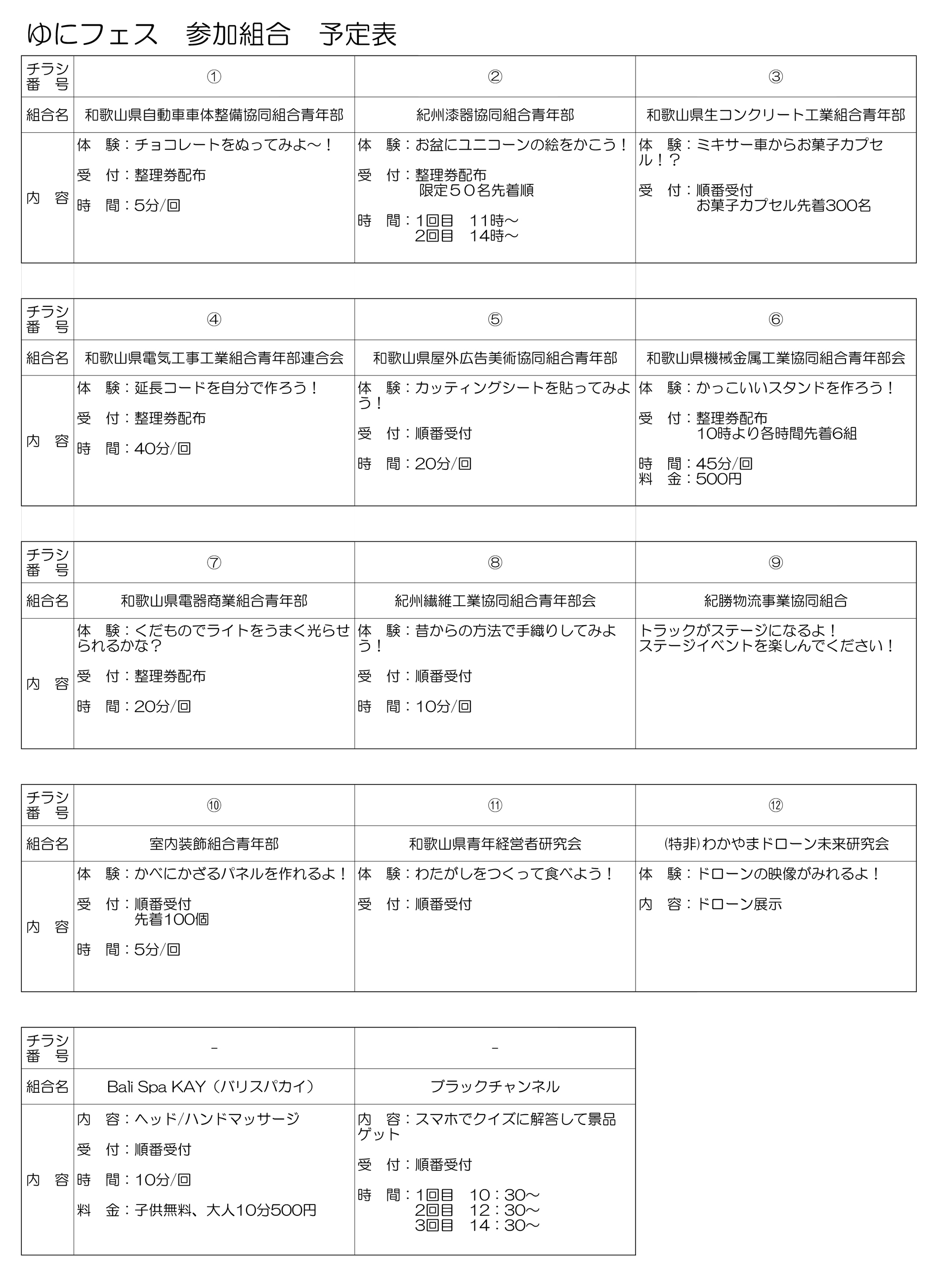 参加組合 予定表